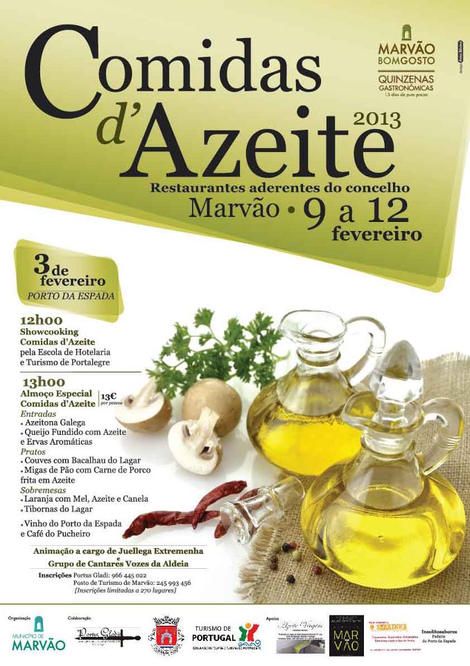 “Comidas d ‘ Azeite ” é o evento organizado pelo Município de Marvão no quadro de uma quinzena inteiramente dedicada aos comeres do lagar, sob a chancela da marca “Marvão Bom Gosto”.