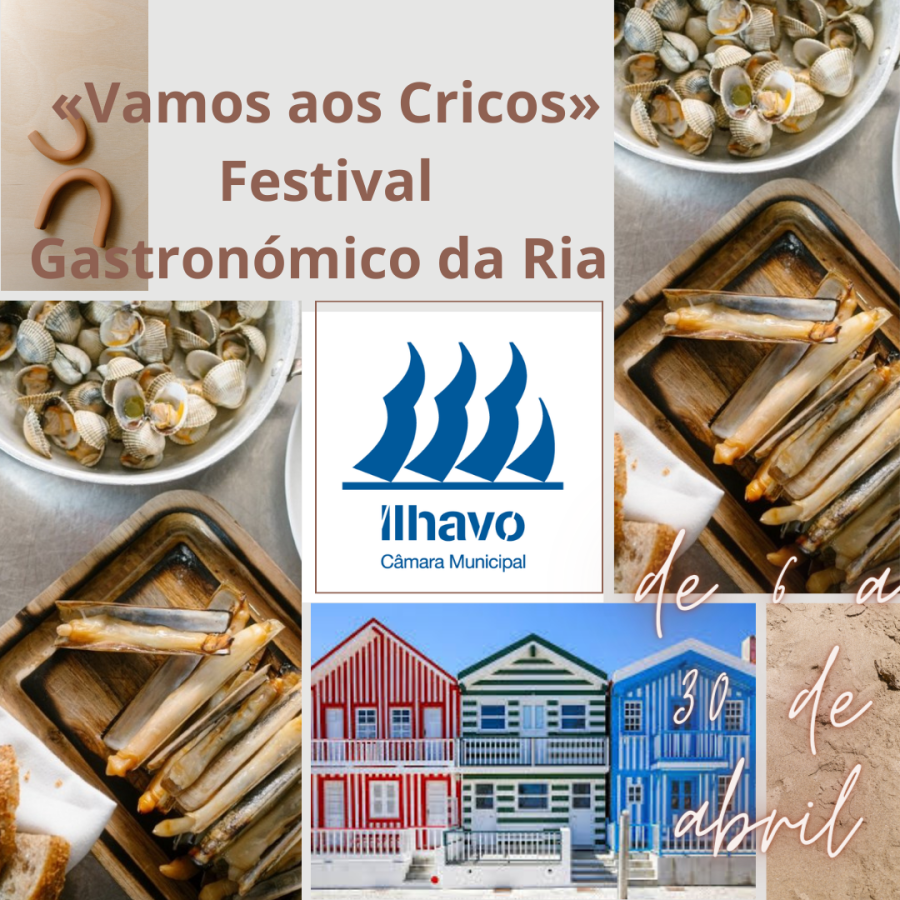 “Vamos aos Cricos” ou dito de outro modo é um Festival Gastronómico dos Bivalves da Ria de Aveiro… O objectivo é a promoção da gastronomia local, baseada nesses bivalves que têm origem também local, na ria de Aveiro mais precisamente e que “mãos sábias ” preparam como ninguém como petisco ou prato para prazer e degustação por parte de quem o queira fazer, vindo à restauração de Ilhavo .